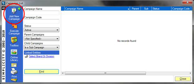 Click on “Add New Campaign” and select “Start with a blank Canvas”