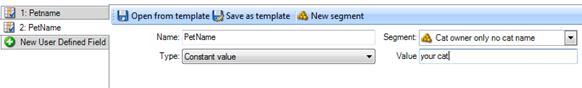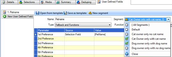 Note: Multiple User Defined fields can be created using the same naming conventions and applying different segment names. A useful tool when using one media (email creative) and slightly different text variations need to be output, based on segment.