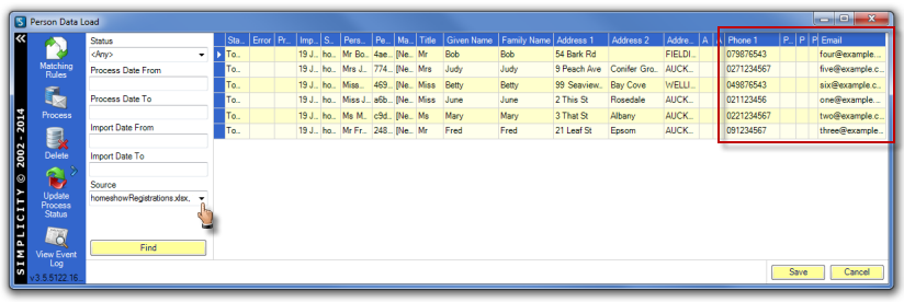 On completion of the import spec the external source data is imported into the data load table and the records matched and processed as outlined in Matching Rules and Process Data Load Records.