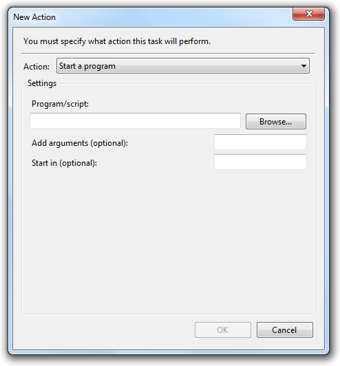 Make sure the program and start in locations are specified and click "OK" when configured..