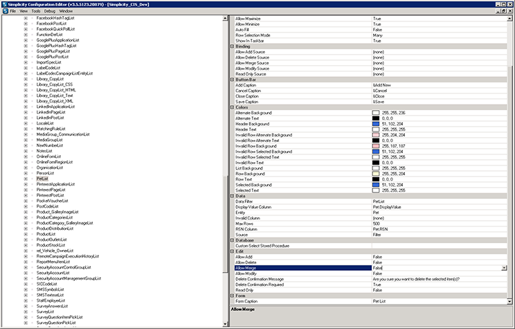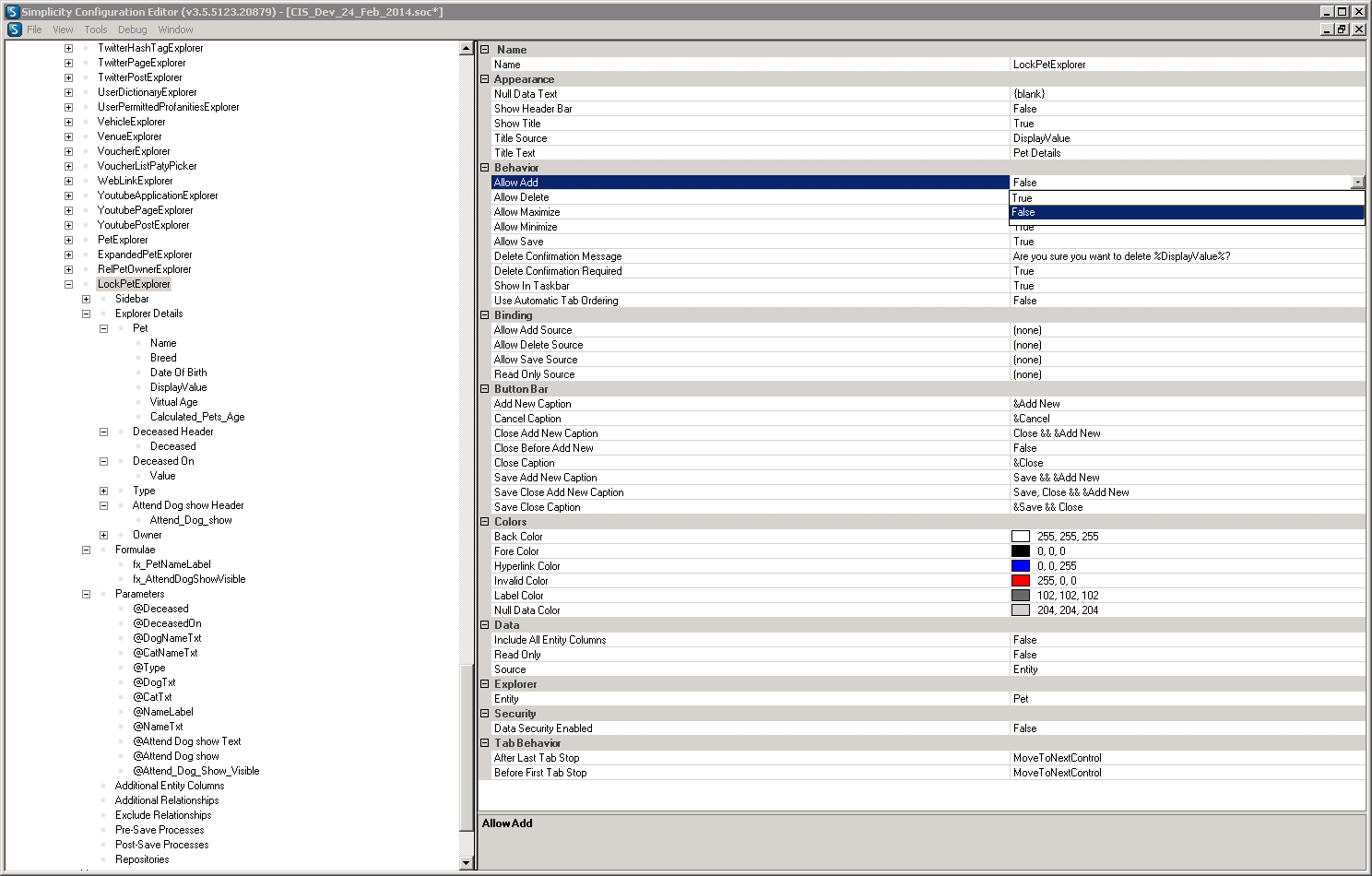 The following walk through takes you through defining security access, visibility and editability permissions that could be associated with a pet entity.