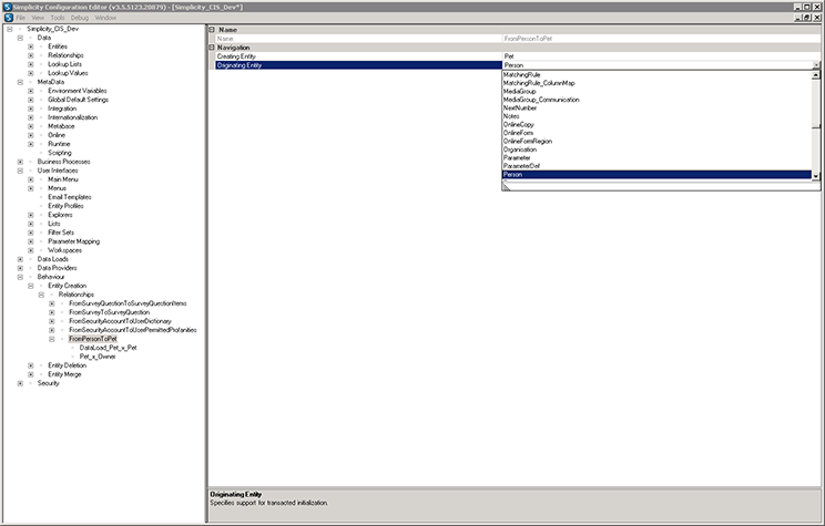 The following walk through takes you through the process of defining entity creation rules using the example of merging a pet entity.