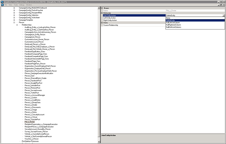 The following walk through takes you through the process of defining entity merge rules using the example of deleting a pet entity.